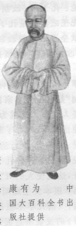 生平 康有为出生于士大夫家庭,自幼受传统儒家教育。青年时受业于广东名儒朱次琦,受其“济人经世”思想的影响。清光绪五年(1879)、八年,先后游历香港、上海,初步接触西方文明,开始阅读西书,接受西方思想影响。在空前严重的民族危机和社会危机刺激下,光绪十四年第一次向皇帝上书,请求变法。光绪十六年在广州会见今文经学家廖平,受廖的影响由古文经学转向今文经学,借助今文经鼓吹变法维新。光绪二十一年与弟子梁启超同往北京参加会试,正值丧权辱国的《马关条约》签订,康梁联合各省应试举人发动著名的《公车上书》,提出拒和、迁都、练兵、变法四项主张。不久,中进士,授工部主事。光绪二十四年,在北京组织“保国会”,将维新运动进一步推向高涨。“百日维新”开始,康有为受光绪皇帝召见,任为“总理衙门章京”,许其专折奏事。在此期间,他连上奏折,提出变法维新的具体主张。主要内容是:在政治上从“通下情”入手,逐步变君主专制为君主立宪;经济上要求保护和发展工商业,使中国发展为资本主义工业国;文化教育上要求废除八股,改革科举制度,兴办新式学堂,提倡“西学”。试图通过君权实行和平改良,使中国逐步走向资本主义道路。戊戌政变发生后逃亡日本,后长期周游于美、欧、南洋,在海外组织“保皇会”,反对革命。辛亥革命后回国,民国六年参与张勋复辟。晚年在游历、讲学中度过。