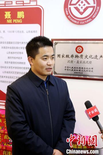 国家级非物质文化遗产聂家庄泥塑代表性传承人聂鹏接受记者采访。 沙见龙 摄