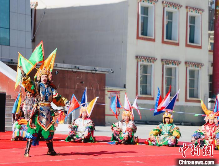 为保护和传承文化遗产,弘扬优秀传统文化,国家级非物质文化遗产代表性项目青海马背藏戏《丹玛之子》2月14日在青海省果洛州格萨尔文化广场展演。