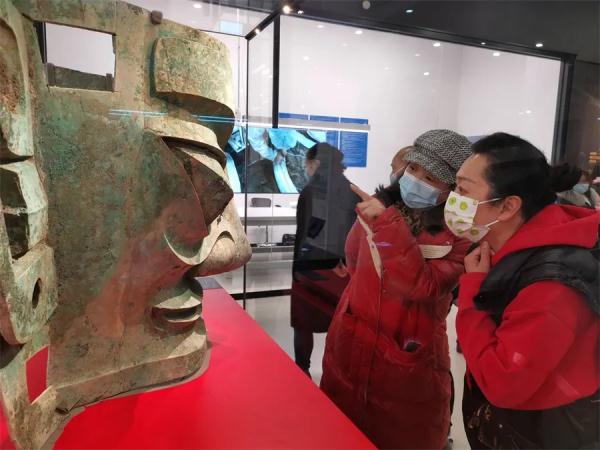 三星堆博物馆景区管委会规划建设部部长朱亚蓉表示,为了响应广大群众的观展需求,三星堆博物馆调集了专业的物流、展陈公司,特别定制了展柜,调整展馆展线,最终确保青铜大面具能够在元宵节与公众见面。“这充分体现了三星堆遗址‘保护成果人人共享’的保护利用理念和三星堆博物馆‘以人为本’的办馆理念。”