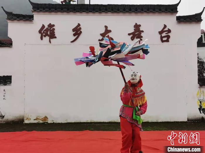 资料图:安徽池州傩戏演员在乡村舞台演出。 张强 摄