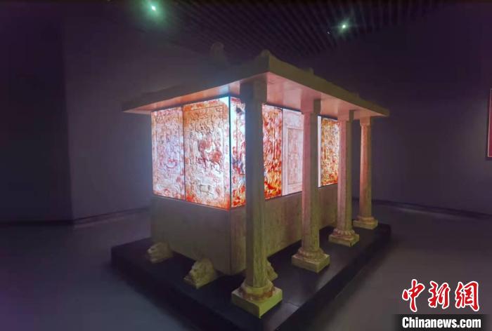 通过冰屏投影展示虞弘墓汉白玉石椁内部构造。 高雨晴 摄
