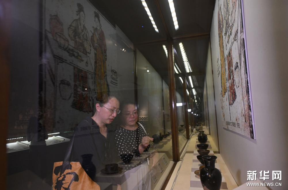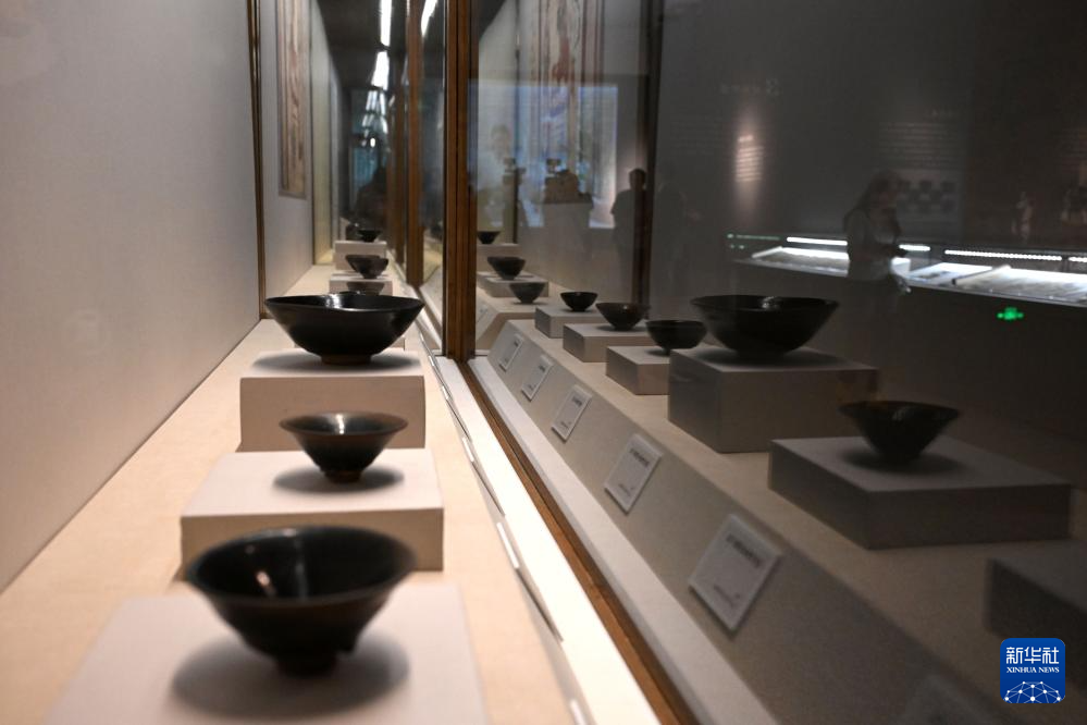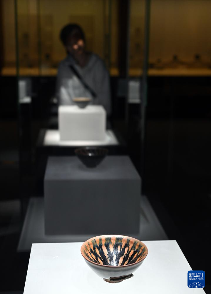 这是展出的建窑黑釉酱斑盏(6月26日摄)。