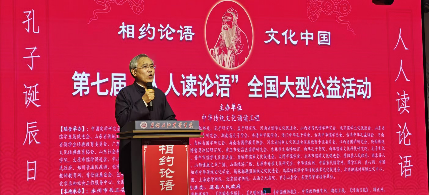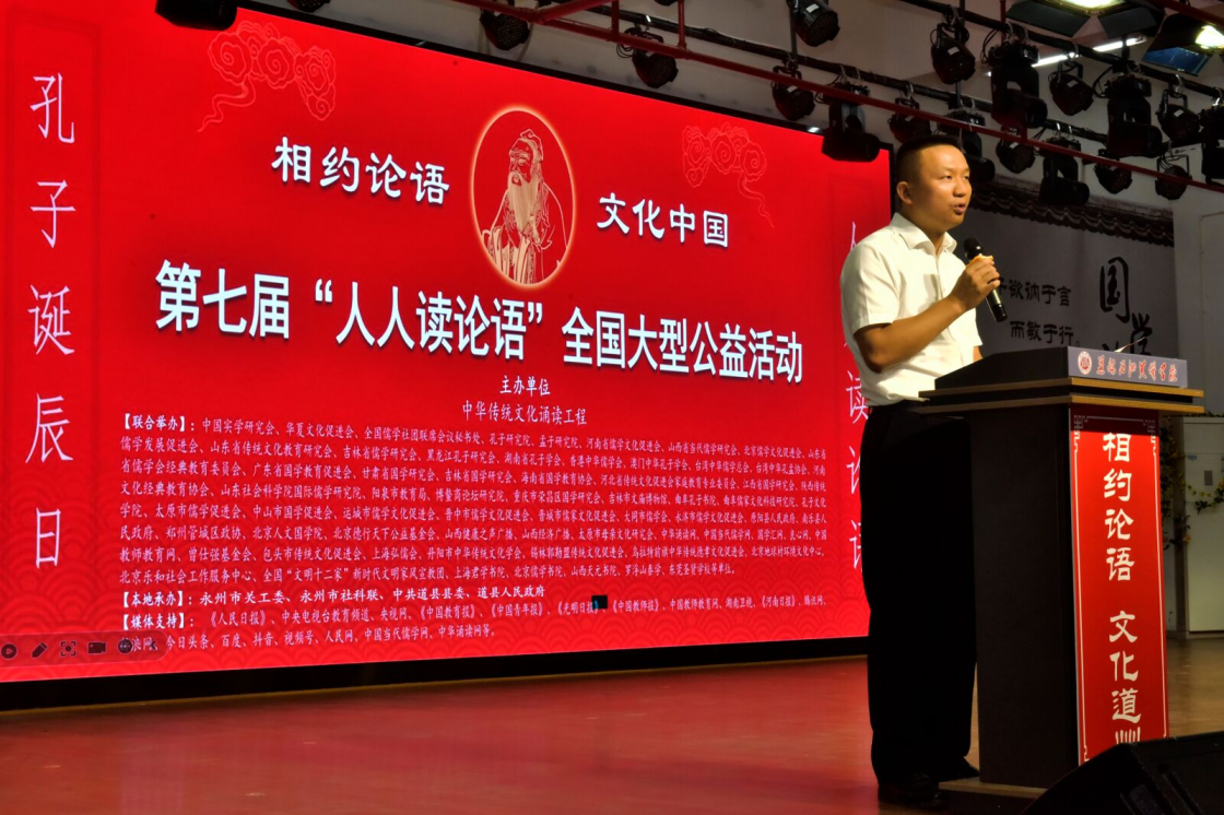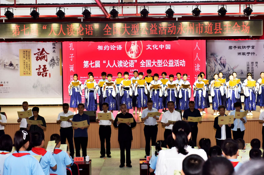第七届全国“相约《论语》 文化中国——孔子诞辰日 人人读《论语》”大型公益活动南方主会场于在9月28日在湖南永州市道县隆重举行,全国一万多个会场逾1600多万人几乎于同一时间呼应联动,齐声诵读《论语》。《论语》之声,激荡神州!