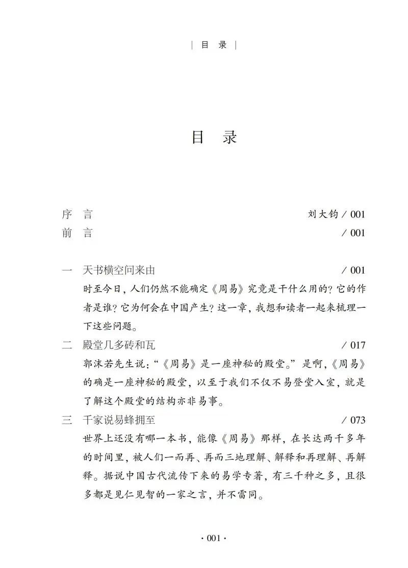 著名易学大家刘大钧先生为本书作序,认为书中的很多见解不仅让人耳目一新,更彰显了大易之道的时代意义和历史意义,充分反映了“洁静精微,《易》之教也”的特点,《天下周易》是研习《周易》的进阶必读书籍。