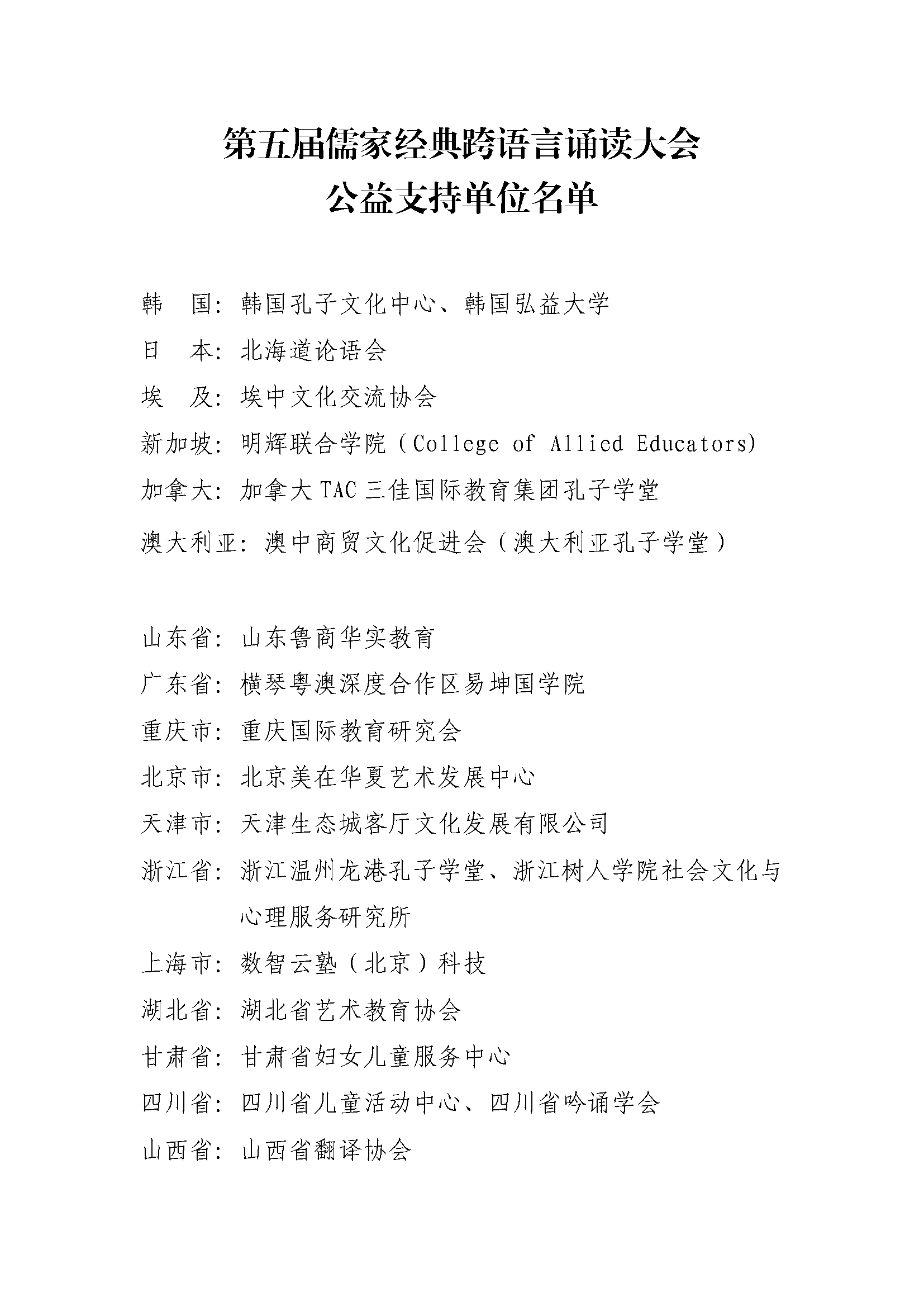 第五届儒家经典跨语言诵读大会公益支持单位名单