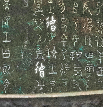 青铜器大盂鼎铭文中的两个“德”字。