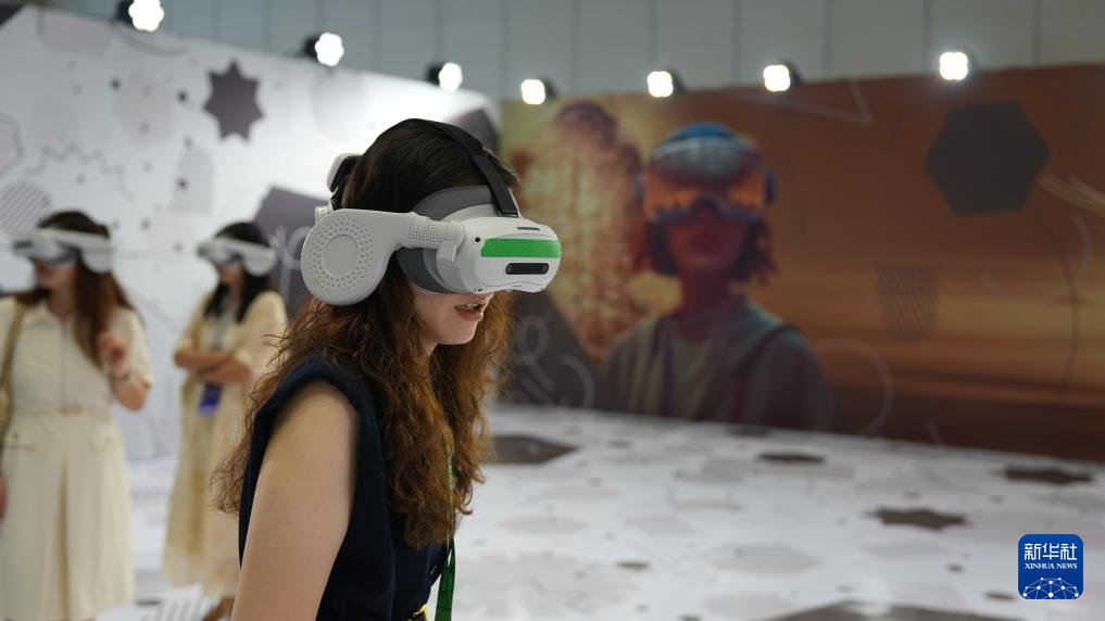8月28日,观众在博览会上观看XR沉浸式电影《了不起的甲骨文·王子的荣耀》。新华社记者 杨静 摄