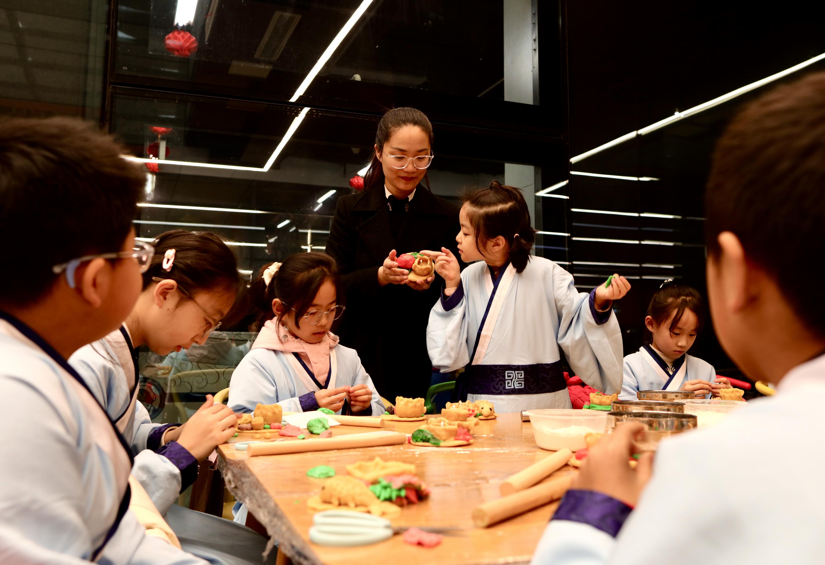 孔子博物馆社教体验特别推出“灯火映孔博·雅趣闹元宵”研学营活动,为青少年观众打造了一场沉浸式的传统文化体验之旅。在“巧手塑面灯”环节,同学们亲手制作代表十二个月的豆面灯,并通过冷凝水实验,感悟古代农耕智慧与现代气象科学的异同。“萝卜灯雕刻”体验,让大家一同将儒家智慧与文物纹样融入雕刻之中,打造成为别具一格的“萝卜灯展”。同时,在老师的带领下,同学们学习北方元宵的“滚制”工艺,亲手调配馅料,体验制作元宵的乐趣。还有猜灯谜、制作荷花灯环节,让同学们寓教于乐,学在其中。