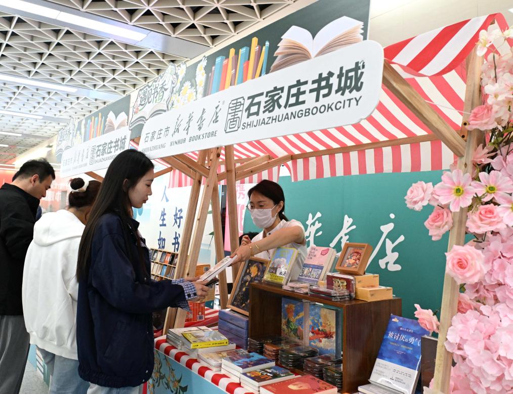 19日、河北省の石家荘市図書館が開いたイベントで本を選ぶ市民。(石家荘=新華社配信/陳其保)