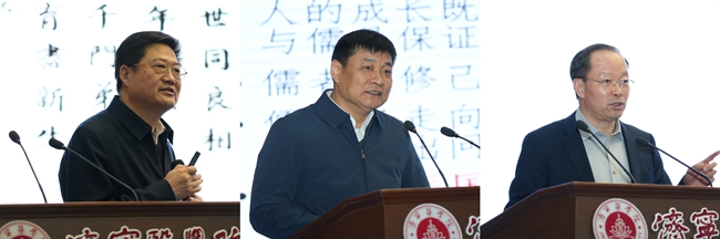 山东中医药大学原副校长王振国,孔子研究院党委副书记、院长孔德立,济宁医学院党委副书记、院长李栋作主旨报告。王振国以《医儒同道:齐鲁医派的文化底色》为题,梳理了齐鲁医派的发展历史脉络,阐释了儒家文化对中医学“医德、医风、医术”的全方位浸润与塑造,勾勒出齐鲁大地“医儒同道”的传承脉络,揭示了医与儒二者的内在关联。孔德立以《以仁为本:儒医文化的核心价值》为题,将孔子“仁”的核心思想与中医以济世为怀的“仁术”相结合,深入溯源并剖析了儒与医的起源和密切联系。李栋以《儒医融合育人体系的济医探索》为题,以济医特色医学人文教育体系为切入点,向与会专家学者介绍了学校根植孔孟之乡,在推动儒家文化与现代医学教育融合方面的思考,以及儒家文化与医学教育深度融合的儒医文化育人实践。