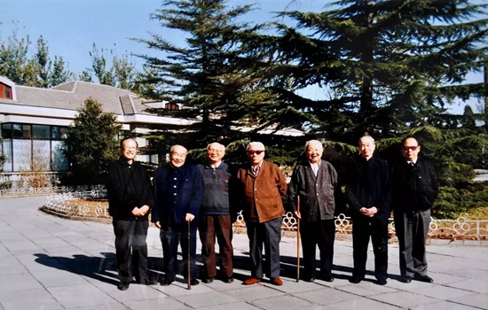 从左至右分别为:谢辰生、刘九庵、杨仁恺、谢稚柳、启功、徐邦达、傅熹年
