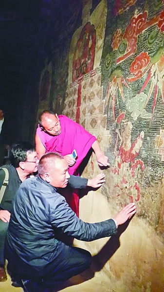 哲蚌寺僧人在与专家一起商讨寺内壁画的修复方案。光明日报记者李韵摄/光明图片