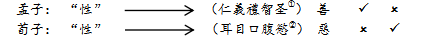 那麽,“人性善恶”对荀子和孟子来说真的不是一个问题吗?换言之,荀、孟之间真的不存在“人性善恶”之争吗?是或者否,答案其实就在《孟》、《荀》本文之中。兹作简录如下:(图示Ⅲ)