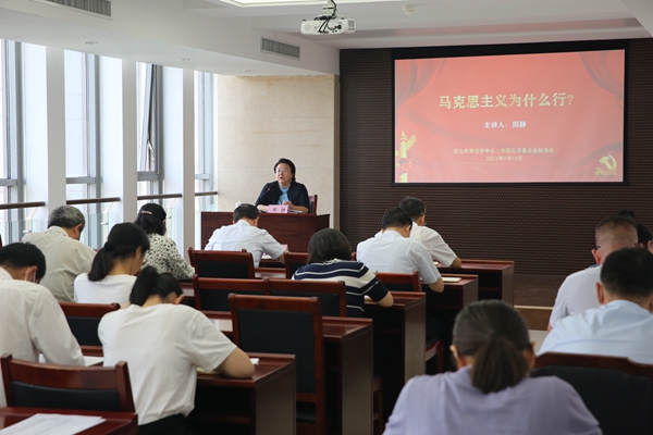 “马克思主义科学真理与中华优秀传统文化基因高度契合。”尼山世界儒学中心(中国孔子基金会秘书处)党委委员、中国孔子基金会副秘书长周静以“马克思主义为什么行”为题,全面回顾了马克思主义真理在中国落地生根、结出丰硕果实的伟大历程,系统论述了马克思主义科学性和真理性、人民性和实践性、开放性和时代性的理论品格,深入浅出地揭示了“中国共产党为什么能,中国特色社会主义为什么好,归根到底是因为马克思主义行”。党课还深刻阐释了继续推进马克思主义中国化,就要坚持把马克思主义基本原理同中国具体实际相结合、同中华优秀传统文化相结合,用马克思主义观察时代、把握时代、引领时代的重要论述;阐明了着力推进中华优秀传统文化的创造性转化、创新性发展,让党的创新理论立足中国特色社会主义伟大实践,深深植根于中华优秀传统文化的沃土,铸就中华文化新辉煌,谱写中华文明新篇章,让当代马克思主义焕发出更强大的真理力量。