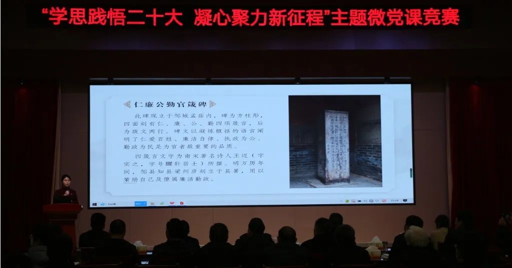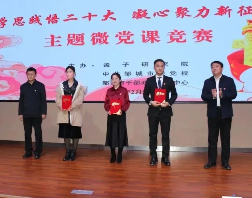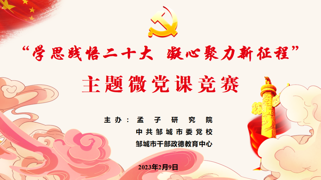 为全面学习宣传贯彻党的二十大精神,坚定不移把党的二十大提出的目标任务落到实处,2月9日下午,孟子研究院、中共邹城市委党校、邹城市干部政德教育中心联合举办“学思践悟二十大 凝心聚力新征程”主题微党课竞赛活动。