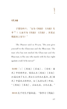 【译文】孔子对儿子伯鱼说:“你学习《周南》