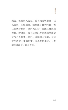 子 张 第 十 九 掩盖,生怕别人看见;君子则光明磊落,正 视错误,知错就改,就好比日食和月食,都 只是暂时性的,之后光芒会一如既往地照耀 大地。所以说,君子这种闪着光辉的品质会 让所有人仰望、崇拜。这就启示我们,在日 常生活中不要怕犯错,也不要怕批评,只要 能及时改正,就会进步。 245