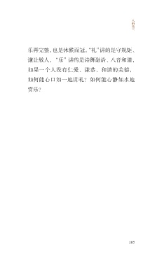 八 佾 第 三 乐再完整,也是沐猴而冠。“礼”讲的是守规矩、 谦让敬人,“乐”讲的是诗舞融洽、八音和谐, 如果一个人没有仁爱、谦恭、和谐的美德, 如何能心口如一地讲礼?如何能心静如水地 赏乐? 105