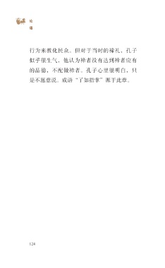 ?论 语 行为来教化民众。但对于当时的禘礼,孔子 似乎很生气,他认为禘者没有达到禘者应有 的品德,不配做禘者。孔子心里很明白,只 是不愿意说。成语“了如指掌”源于此章。 124
