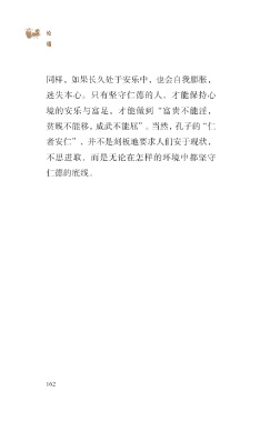 ?论 语 同样,如果长久处于安乐中,也会自我膨胀, 迷失本心。只有坚守仁德的人,才能保持心 境的安乐与富足,才能做到“富贵不能淫, 贫贱不能移,威武不能屈”。当然,孔子的“仁 者安仁”,并不是刻板地要求人们安于现状, 不思进取,而是无论在怎样的环境中都坚守 仁德的底线。 162