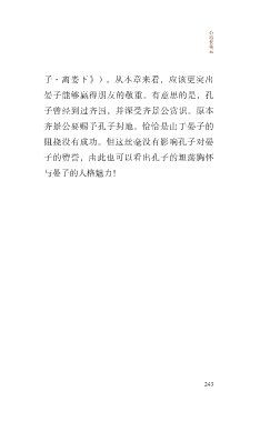 公 冶 长 第 五 子·离娄下》)。从本章来看,应该更突出 晏子能够赢得朋友的敬重。有意思的是,孔 子曾经到过齐国,并深受齐景公赏识。原本 齐景公要赐予孔子封地,恰恰是由于晏子的 阻挠没有成功。但这丝毫没有影响孔子对晏 子的赞誉,由此也可以看出孔子的坦荡胸怀 与晏子的人格魅力! 243