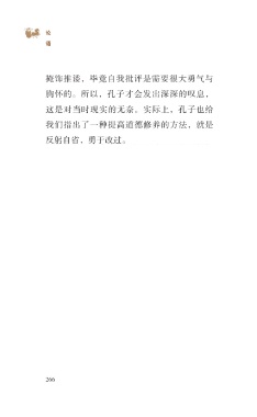 ?论 语 掩饰推诿,毕竟自我批评是需要很大勇气与 胸怀的。所以,孔子才会发出深深的叹息, 这是对当时现实的无奈。实际上,孔子也给 我们指出了一种提高道德修养的方法,就是 反躬自省,勇于改过。 266