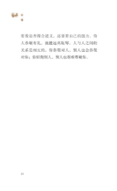 ?论 语 要看是否符合道义,还要看自己的能力。待 人恭敬有礼,就能远离耻辱。人与人之间的 关系是相互的,你恭敬对人,别人也会恭敬 对你;你轻侮别人,别人也很难尊敬你。 34