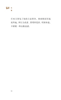 ?论 语 后来又罢免了他的左徒职务,继而将屈原流 放外地。所以为政者,要明辨是非,明察秋毫, 不要被一些表象迷惑。 84