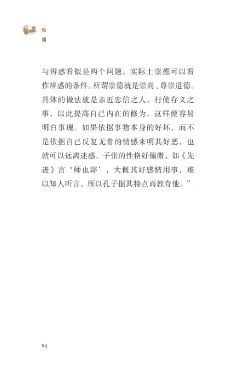 ?论 语 与辨惑看似是两个问题,实际上崇德可以看 作辨惑的条件。所谓崇德就是崇尚、尊崇道德。 具体的做法就是亲近忠信之人,行使存义之 事,以此提高自己内在的修为,这样便容易 明白事理。如果依据事物本身的好坏,而不 是依据自己反复无常的情感来明其好恶,也 就可以远离迷惑。子张的性格好偏激,如《先 进》言‘师也辟’,大概其好感情用事,难 以知人听言,所以孔子据其特点而教育他。” 94