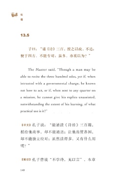 【 译 文】 孔 子 说:“ 能 诵 读《 诗 经》 三 百 篇,