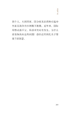 宪 问 第 十 四 到个人,大到国家,因分歧无法调和引起冲 突甚至战争的事例数不胜数。近年来,国际 局势动荡不安,局部冲突时有发生,为什么 没有解决好这些问题?恐怕还得到孔夫子那 里寻求智慧。 203