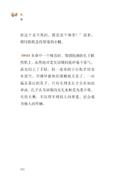 ?论 语 你这个老不死的,简直是个祸害!”说着, 便用拐杖击打原壤的小腿。 【解读】本章中一个鲜活的、情感饱满的孔子跃 然纸上。虽然他对老友原壤的批评毫不客气, 甚至用上了手杖,但一连串的言行似乎没有 生真气,否则早就和原壤断绝关系了。一向 温良恭让的孔子,只有见到老友才会有如此 举动。孔子认为原壤的无礼坐相是为老不尊, 有伤大雅,不仅得不到别人的尊重,还会成 为他人的笑柄。 282