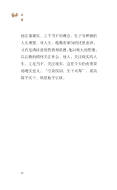 ?论 语 他注重现实、立于当下的观念。孔子有积极的 人生理想,对人生,他既有深沉的忧患意识, 又有充满诗意的热情和浪漫,他以极大的热情, 以忘我的情怀关注社会、他人,关注现实的人 生。立足当下,关注现实,这在今天仍有重要 的现实意义。“空谈误国,实干兴邦”,成功 缘于实干,祸患始于空谈。 26