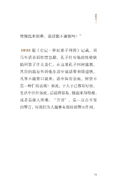 颜 渊 第 十 二 情做起来很难,说话能不谨慎吗?” 【解读】据《史记·仲尼弟子列传》记载,司 马牛话多而性情急躁,孔子针对他的性格缺 陷回答了什么是仁。在这里孔子因材施教, 其目的就是告诉他生活中说话要和缓谨慎, 凡事不能张口就来;话中留有余地,何尝不 是一种仁的表现?如此,于人于己都有好处。 生活中往往如此,话说得容易,做起来却很难, 或者是强人所难。“言讱”,是一亘古不变 的警言,对我们为人做事有很好的警示作用。 75