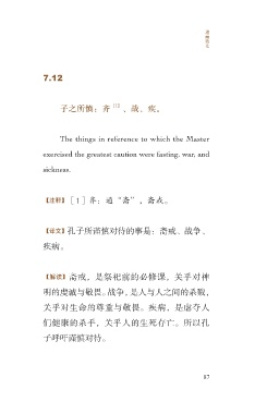 【译文】孔子所谨慎对待的事是:斋戒、战争、