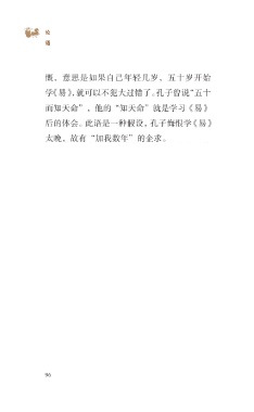 ?论 语 慨,意思是如果自己年轻几岁,五十岁开始 学《易》,就可以不犯大过错了。孔子曾说“五十 而知天命”,他的“知天命”就是学习《易》 后的体会。此语是一种假设,孔子悔恨学《易》 太晚,故有“加我数年”的企求。 96