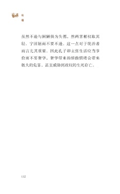 ?论 语 虽然不逊与固陋俱为失德,然两害相权取其 轻,宁固陋而不要不逊。这一点对于统治者 而言尤其重要。因此孔子即主张生活应当节 俭而不要奢华,奢华带来的骄傲情绪会带来 极大的危害,甚至威胁到政权的生死存亡。 132