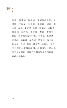 ?论 语 张勇、黄秀韬、屈士峰、郭耀担任主撰;王 明朋、王新莹、朱宁燕、朱振秋、刘建、李 金鹏、杨光、束天昊、张博、陈阳光、尚树志、 周茹茹、房政伟、高天健、曹帅、龚昌华、 韩振、鲁慧参与编写工作;于志学、吴泽浩、 张仲亭、韩新维、岳海波、梁文博、韦辛夷、 徐永生、卢冰、吴磊、杨文森、杨晓刚、张博、 李岩等艺术家创作插图;本书编写过程中参 阅了大量资料,得到了众多专家学者的帮助, 在此一并致谢。 290