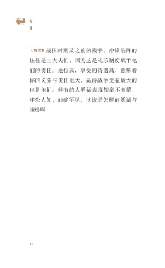 ?论 语 【解读】战国时期及之前的战争,冲锋陷阵的 往往是士大夫们,因为这是礼乐制度赋予他 们的责任。地位高,享受的待遇高,意味着 你的义务与责任也大,赢得战争受益最大的 也是他们。但有的人勇猛表现却毫不夸耀, 唯恐人知,的确罕见,这该是怎样的低调与 谦逊啊! 32