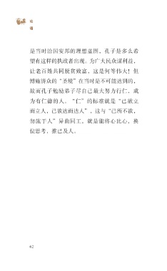 ?论 语 是当时治国安邦的理想蓝图,孔子是多么希 望有这样的执政者出现。为广大民众谋利益, 让老百姓共同脱贫致富,这是何等伟大!但 博施济众的“圣境”在当时是不可能达到的, 故而孔子勉励弟子尽自己最大努力行仁,成 为有仁德的人。“仁”的标准就是“己欲立 而立人,己欲达而达人”,这与“己所不欲, 勿施于人”异曲同工,就是能将心比心,换 位思考,推己及人。 62