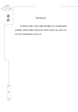 论 Veintiocho 语 Confucio dijo: entre diez familias en un peque?o pueblo, debe haber personas fieles como yo, pero no son tan estudiosas como yo. 82