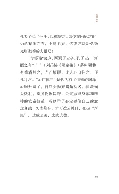 传 第 六 章 孔夫子弟子三千,以德聚之。即使在困厄之时, 仍然紧随左右,不离不弃,这或许就是弘扬 光明道德的力量吧! “南阳诸葛庐,西蜀子云亭。孔子云:‘何 陋之有?’”(刘禹锡《陋室铭》)茅庐陋巷, 有德者居之,光芒耀眼,让人心向往之、顶 礼拜之。“心广体胖”是因为有了道德的润泽, 心胸开阔了,自然会抛弃蜗角功名,看淡蝇 头微利,摆脱物欲羁绊,最终赢得身体和精 神的安泰舒适。所以君子必定要使自己的意 念真诚,矢志修身,才可拨云见日,变身“新 民”,达成至善,成就大德。 93