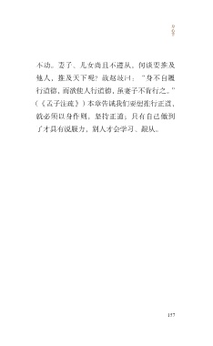 尽 心 下 不动。妻子、儿女尚且不遵从,何谈要推及 他人,推及天下呢?故赵岐曰:“身不自履 行道德,而欲使人行道德,虽妻子不肯行之。” (《孟子注疏》)本章告诫我们要想推行正道, 就必须以身作则,坚持正道;只有自己做到 了才具有说服力,别人才会学习、跟从。 157