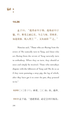 【译文】孟子说:“逃避墨家,必定会回归杨朱;