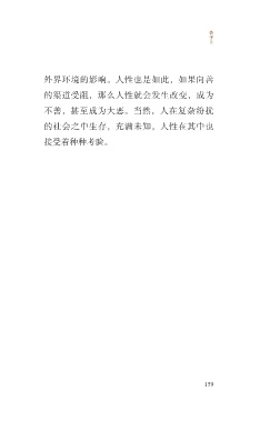 告 子 上 外界环境的影响。人性也是如此,如果向善 的渠道受阻,那么人性就会发生改变,成为 不善,甚至成为大恶。当然,人在复杂纷扰 的社会之中生存,充满未知,人性在其中也 接受着种种考验。 159