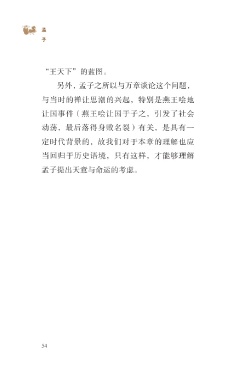 ?孟 子 “王天下”的蓝图。 另外,孟子之所以与万章谈论这个问题, 与当时的禅让思潮的兴起,特别是燕王哙地 让国事件(燕王哙让国于子之,引发了社会 动荡,最后落得身败名裂)有关,是具有一 定时代背景的,故我们对于本章的理解也应 当回归于历史语境,只有这样,才能够理解 孟子提出天意与命运的考虑。 54