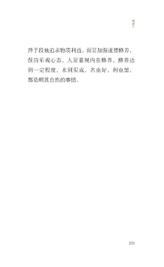 离 娄 上 择手段地追求物质利益,而要加强道德修养, 保持乐观心态。人要重视内在修养,修养达 到一定程度,水到渠成,名也好,利也罢, 都是顺其自然的事情。 231