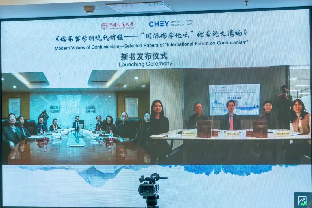 2月18日下午,《儒家哲学的现代价值——“国际儒学论坛”优秀论文选编》新书发布仪式以线上线下结合形式举办。中国人民大学校长、亚洲研究中心理事长刘伟出席仪式,中国人民大学副校长、亚洲研究中心主任杜鹏主持仪式。韩国崔钟贤学术院院长、亚洲研究中心理事长朴仁国,江源大学哲学系名誉教授高在旭,梨花女子大学中文系教授申夏閏,崔钟贤学术院中国学术组总监金暻美、项目主管尹淙铉、项目主管朴礼恩出席仪式。