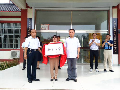 8月9日下午,中国孔子基金会秘书处普及传播部主任、中国孔子基金会孔子学堂推进委员会副主任张华同志一行二人到山东省梁山县大路口乡调研乡村文化建设情况,并参加沙窝李博物馆“孔子学堂”揭牌仪式。